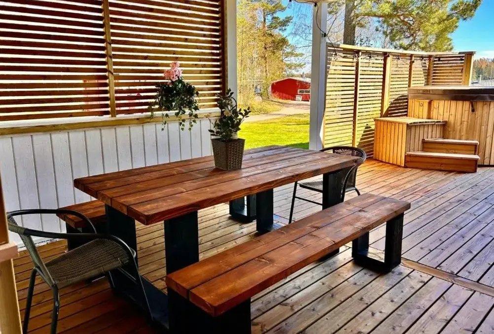 Huvila oli 5 aikuiselle ja kahdelle pienelle koiralle enemmän kuin tilava. Kaunis paikka, kaiken kaikkiaan todella ihastuttava. Sängyt ja petivaatteet hyvät.